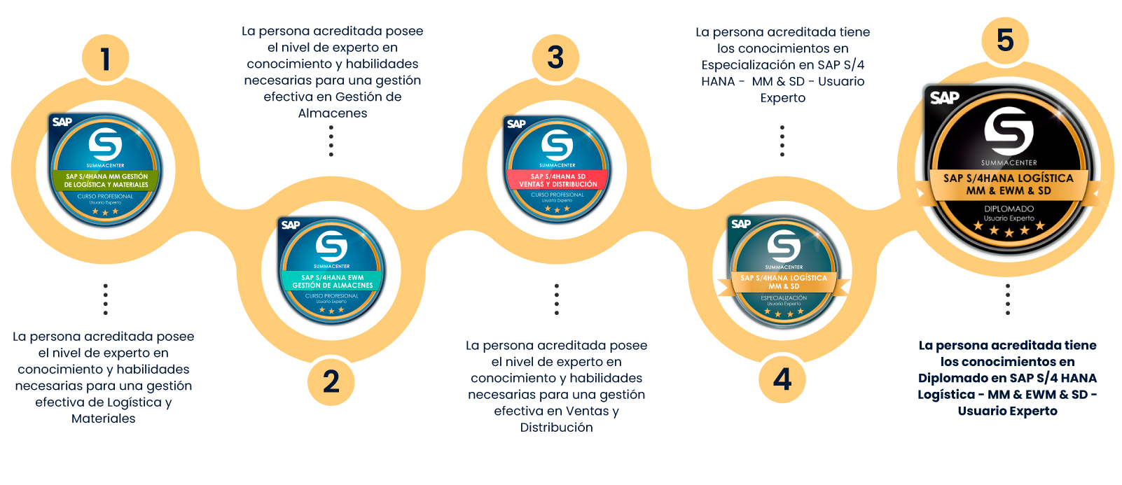 La persona acreditada tiene los conocimientos en Diplomado en SAP S4HANA Logística MM & EWM & SD - Usuario Experto