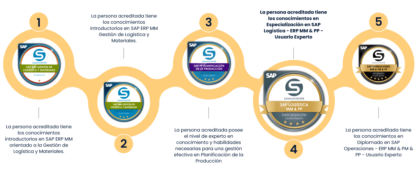 La persona acreditada tiene los conocimientos en Especialización en SAP Logística - ERP MM & PP - Usuario Experto