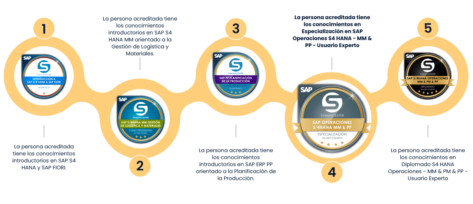 La persona acreditada tiene los conocimientos en Especialización en SAP Operaciones S4HANA MM & PP - Key User