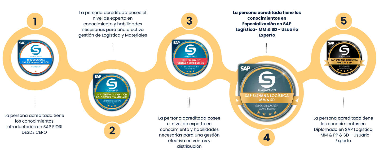 La persona acreditada tiene los conocimientos en Especialización en SAP S4HANA Logística MM & SD - Usuario Experto