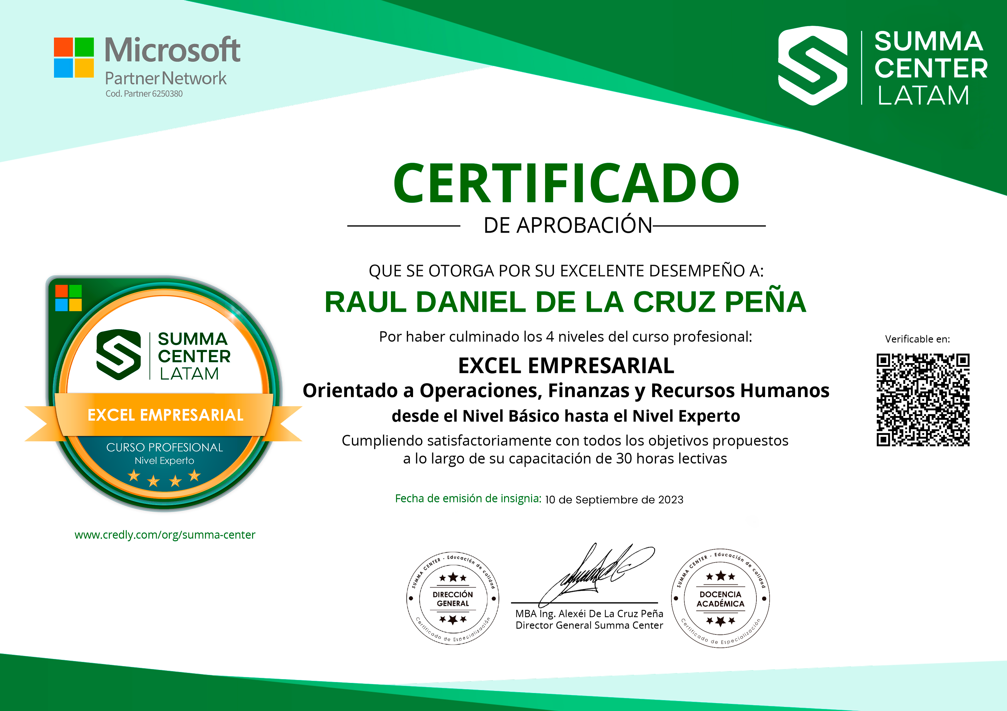 Actualmente es CEO y socio fundador de SUMMA CENTER con quince años de experiencia en gestión de proyectos de software (lineamientos del PMI), aplicaciones de gestión y metodologías de Tecnologías de Información (TI), mejora continua de procesos, ofimática empresarial, Business Intelligence, logística internacional y consultoría SAP R3 y S4 HANA.