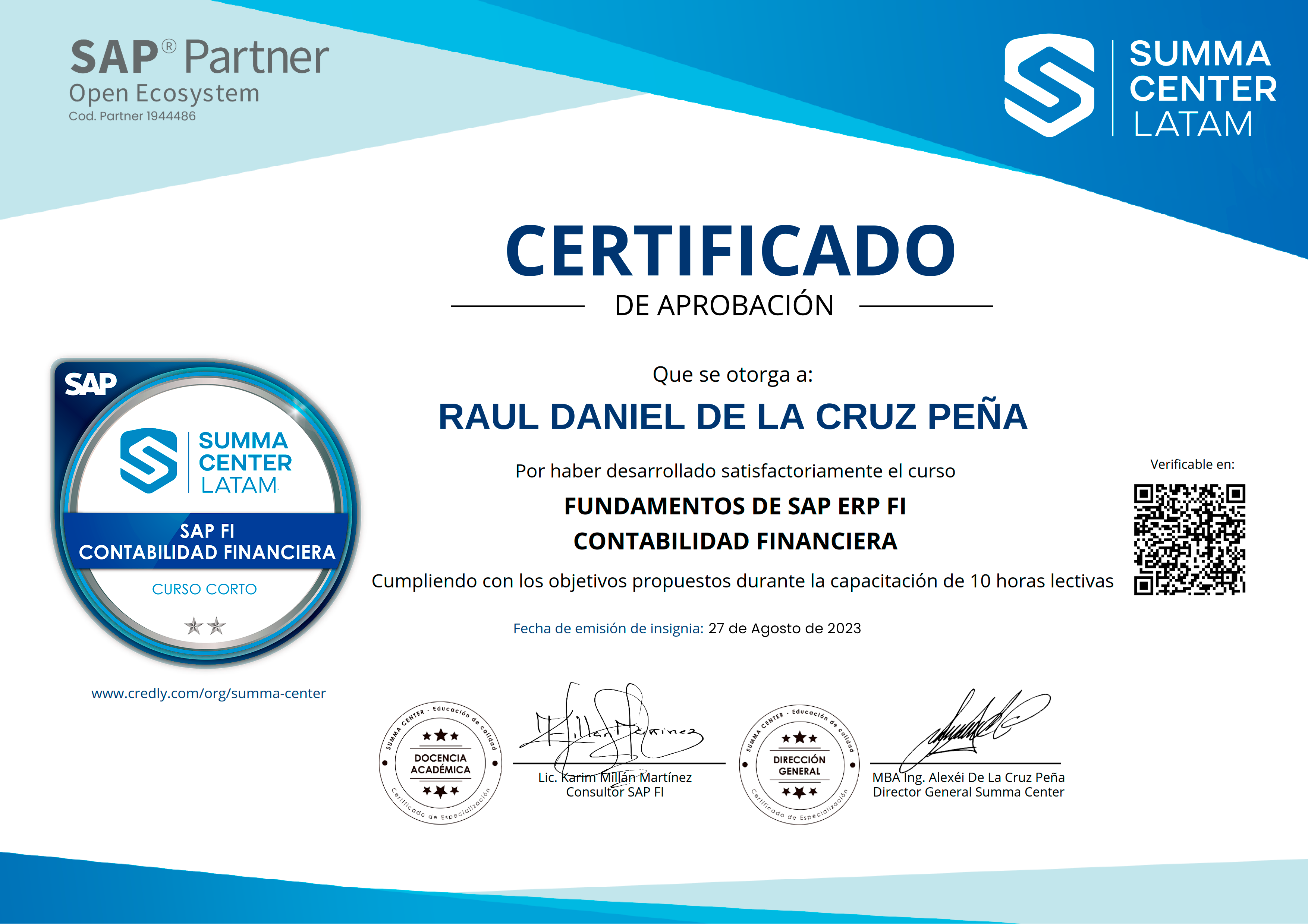 Contador Público y consultor certificado en SAP S/4 HANA FI en Everis Perú, el cual se encarga del soporte y mantenimiento del módulo de SAP finanzas. En relación con su experiencia profesional ha participado en proyectos de implementación y migración SAP R/3 y SAP S/4HANA en compañías del sector retail, servicios y manufactura.