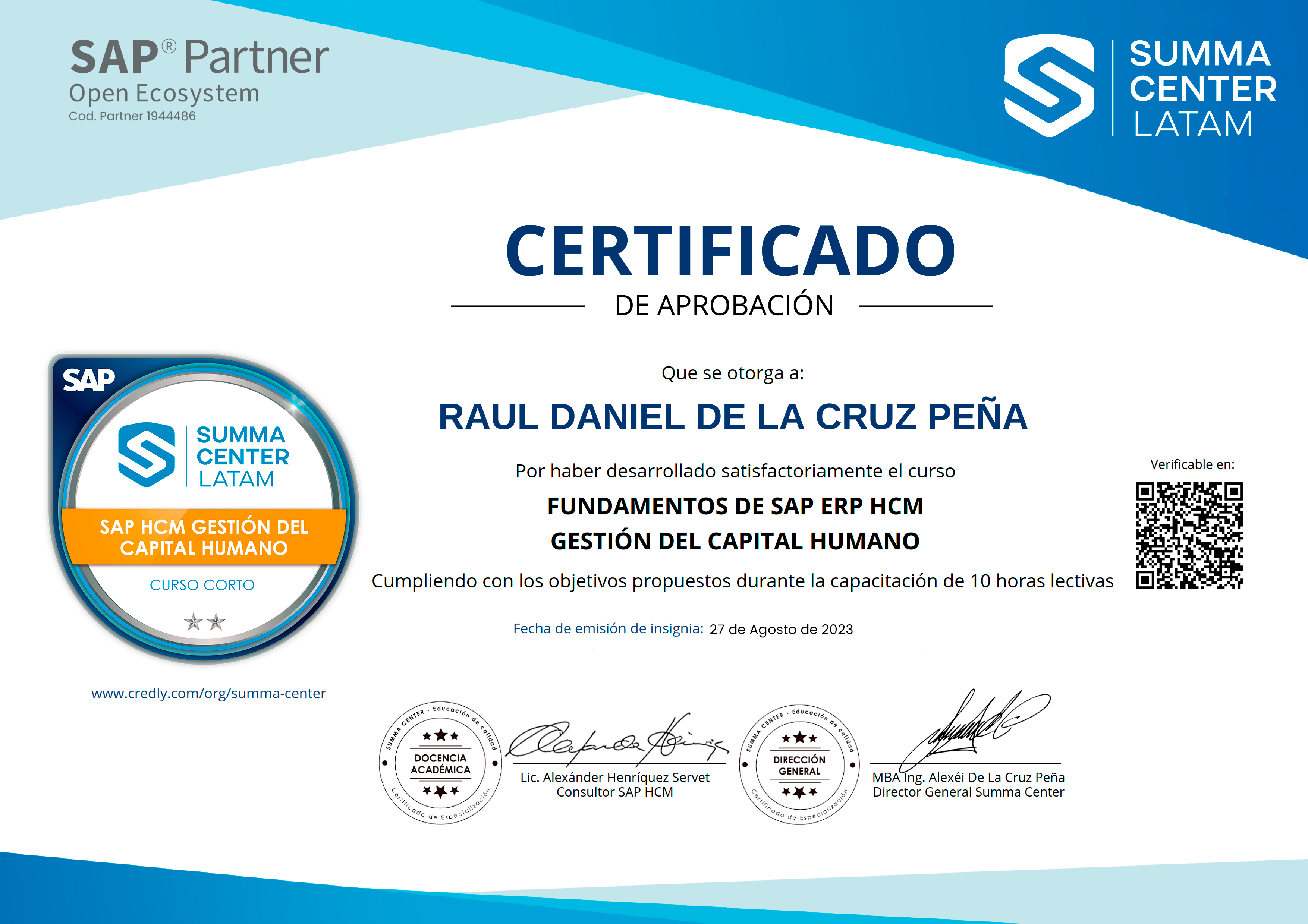 Licenciado en Administración y consultor senior SAP del módulo HCM en la implementación y capacitación de los sub módulos de HCM.