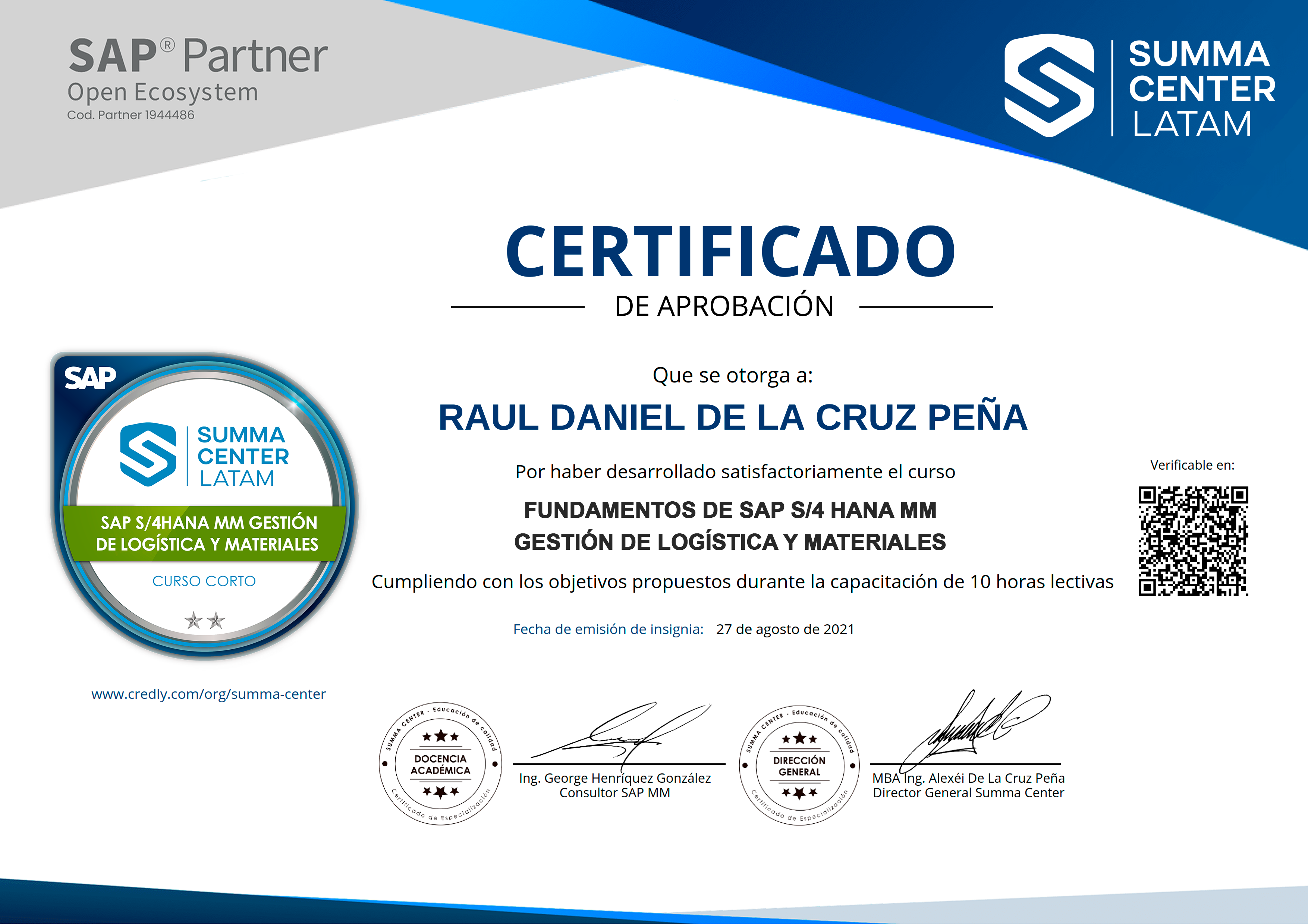 Ingeniero Industrial y consultor certificado en SAP S/4 HANA MM. Actualmente labora para Everis Perú como consultor SAP MM y ha participado en diversos proyectos SAP como el proyecto de implementación Alicorp Bolivia. Asimismo, posee experiencia en manejo de integración con los módulos FI, SD, PP y PM.