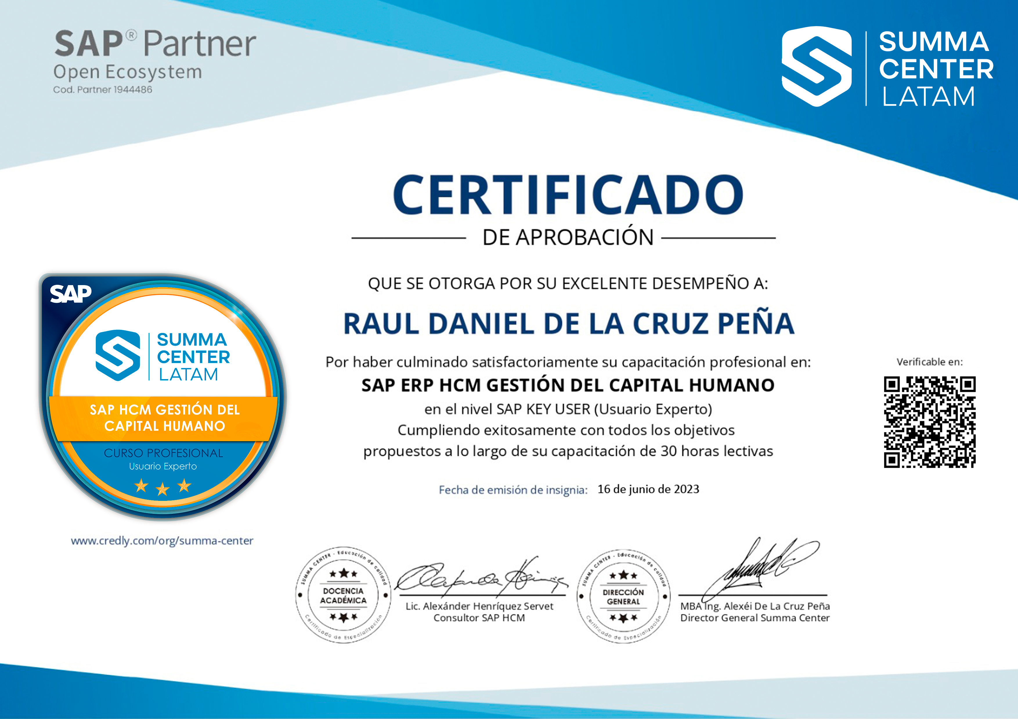 Licenciado en Administración y consultor senior SAP del módulo HCM en la implementación y capacitación de los sub módulos de HCM.