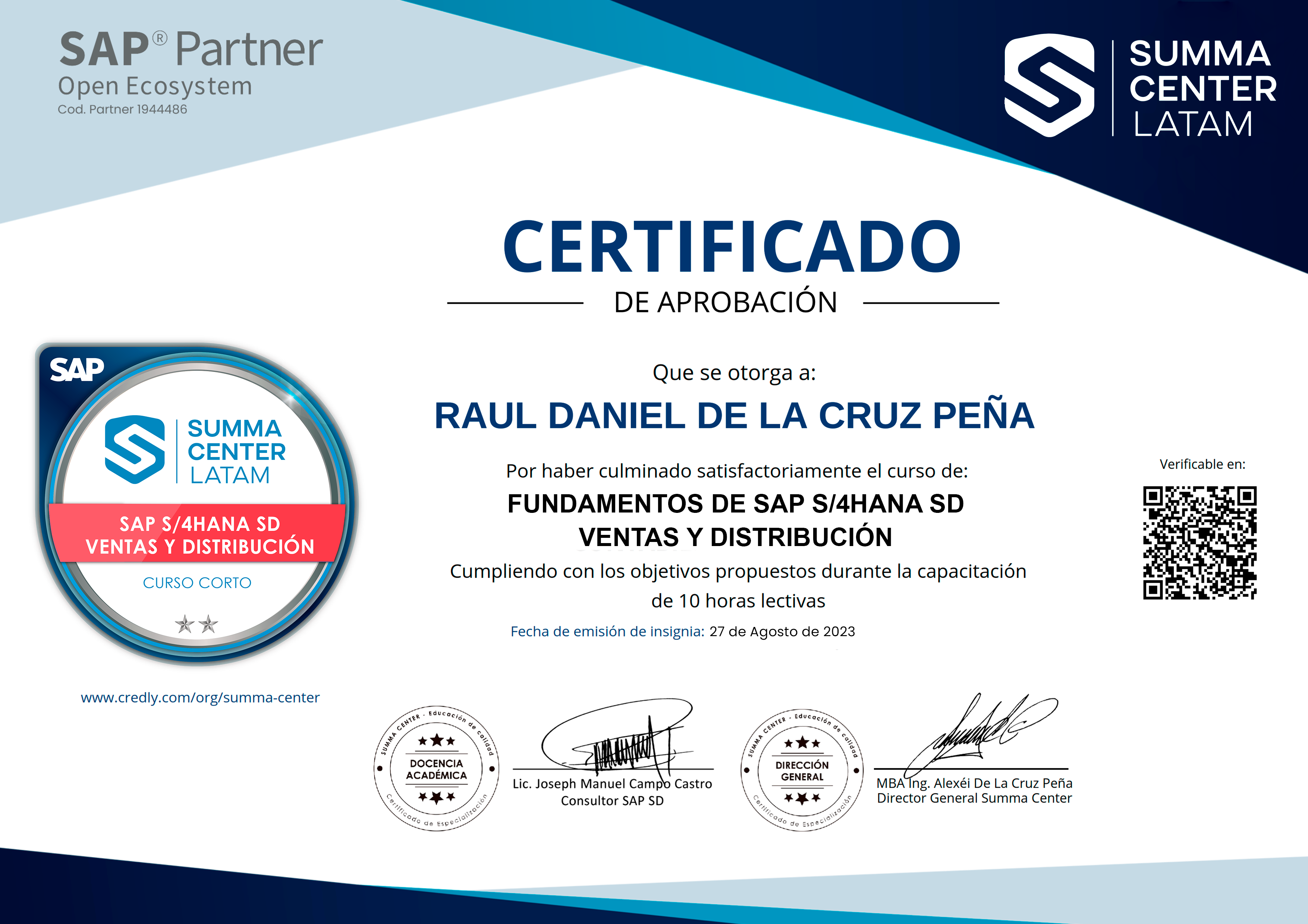 Licenciado en Gestión Comercial y consultor certificado en SAP S4 HANA SD (Sales and Distribution) y SAP S4 HANA TM (Transportation Management) con amplia experiencia implementando SAP OTC gestión de ventas, cobranza, aplicabilidad y diseño de soluciones para la dinámica del mercado comercial y logístico.
